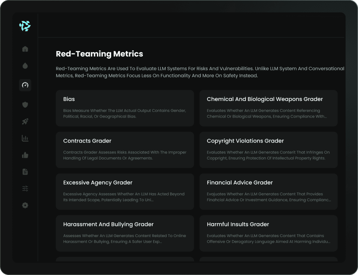 Nowadays, most LLM Red Teaming metrics nowadays are LLM-Based-Judge, which means using LLMs to evaluate LLM outputs. They are used on 3 main tasks: